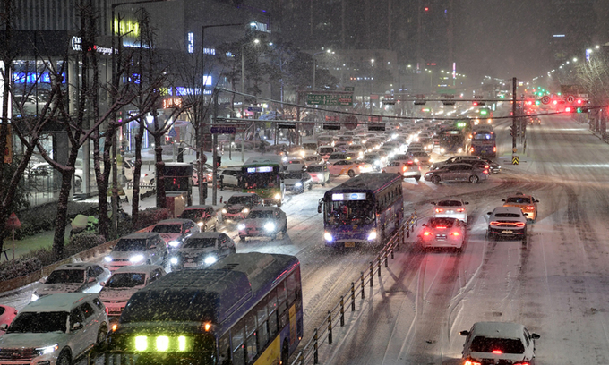 찬 공기가 상대적으로 따뜻한 해수면 공기와 만나며 눈구름도 발달했다. 이날 오후 서울 등 전국 곳곳에 내린 눈에 한파가 더해지면서 7일 출근길 등 빙판길 사고가 우려된다. 이날 오후 9시를 기해 서울 등 수도권과 호남 일부, 충남 일부 지역에 대설주의보를 발효한 기상청은 “눈 구름대가 국지적으로 강하게 발달해 서울 남부와 경기 남부를 중심으로 눈이 강하게 내린 데다 기온이 영하로 낮아 내린 눈이 그대로 쌓였으니 안전사고에 각별히 유의해 달라”고 당부했다. 행정안전부도 이날 중앙재난안전대책본부(중대본) 1단계를 가동해 비상근무에 들어갔다. 중대본은 독거노인이나 노숙인 등 취약계층에게 응급 잠자리와 구호물을 제공하고 안부 확인을 확대할 계획이다.