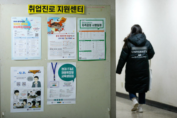 지난 3일 서울시내 대학 취업게시판에 취업정보가 붙어있다. 뉴스1