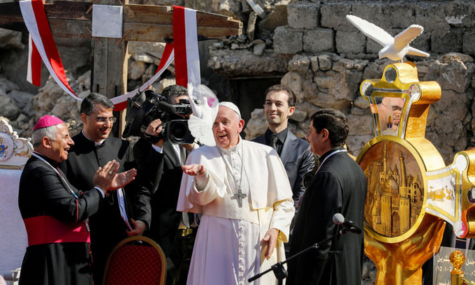 가톨릭 2000년 역사상 처음으로 프란치스코 교황이 이라크를 찾았다. 이라크 방문 이틀째인 6일(현지시간) 우르 평원에서 기독교·이슬람·야지디교 지도자와 만난 프란치스코 교황은 “신의 이름으로 자행된 폭력은 가장 큰 신성모독”이라고 역설했다.