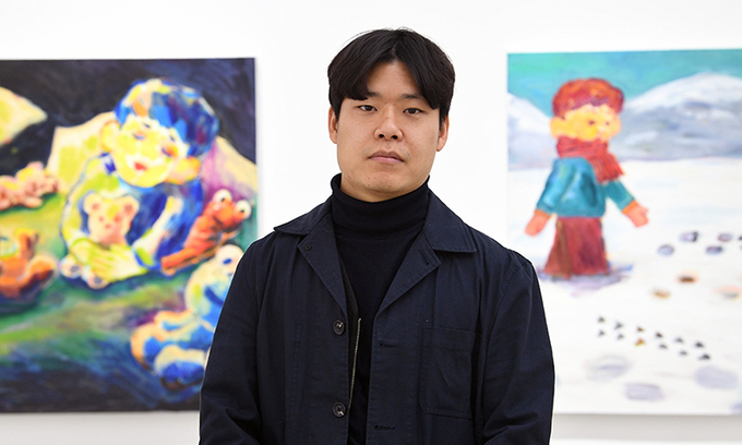“코로나19로 인해 개별적 공간에 갇혀 있는 시간이 많았다. 그런 시간 속에서 친구들과 만난다거나 다른 관계가 진행되는 계기가 줄고 작업실에 혼자 있다 보니 어린 시절 생각을 많이 했다. 과거를 더듬어 기억나는 것 중 담고 싶은 이야기를 지금의 시선으로 작업해 남겼다. 일기 쓰듯 기록하는 매개로 삼아 화면에 남기는 거다. 거창한 걸 담는다기보다는 소소한 이야기들이 그 자체로 의미가 있다고 생각해 화면에 잡아둔다.”