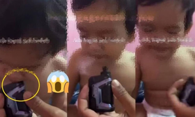 6일 하리안메트로 등에 따르면 휴대폰으로 만화를 보고 있던 남자아기에게 누군가 두 차례 전자담배를 물렸고, 아기가 연기 때문에 캑캑거리는 12초 분량 동영상이 최근 현지 SNS에 퍼졌다.