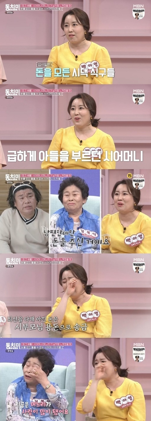 지난 29일 방송된 MBN ‘속풀이쇼 동치미’에서 백아영은 오정태만 칭찬하는 시어머니에 서운함을 내비치며 눈물을 보였다.