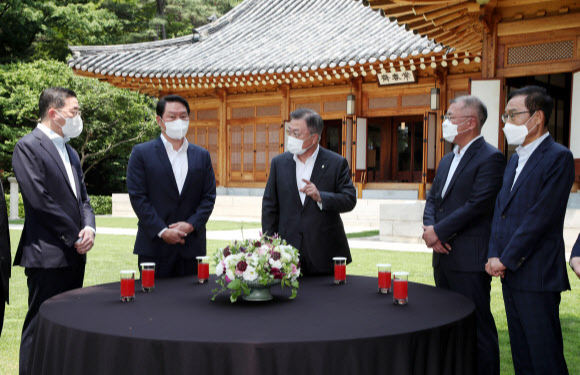 오찬 메뉴에는 문 대통령과 조 바이든 미국 대통령 간 점심에서 제공됐던 크랩케이크가 포함됐다. 문 대통령이 4대 그룹 총수를 청와대로 불러 오찬을 한 것은 취임 후 처음이다.