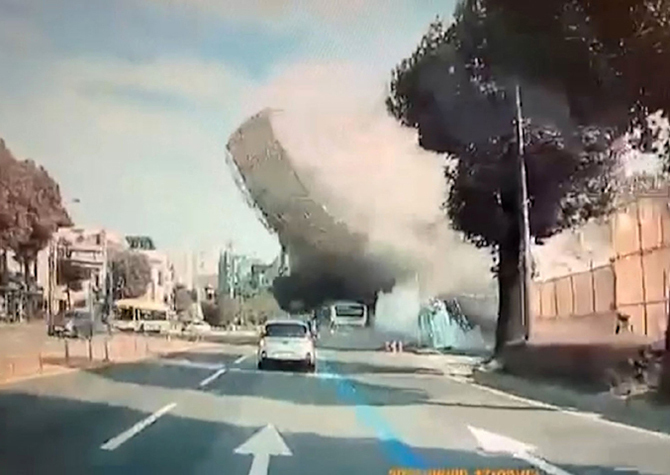 사고현장 반대편에서 시내버스를 기다리던 이모(56)씨는 “와르르 건물이 무너지면서 흙먼지로 뿌옇게 온 하늘을 덮었다”며 “몇초 동안 순식간에 벌어진 일이라 아직도 믿겨지지 않는다”고 당시 상황을 설명했다.