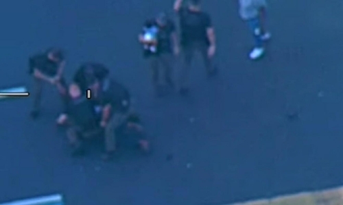 한 아파트 단지에 들어선 제임스는 사방이 경찰차에 가로막히자 차에서 내려 달리기 시작했다.