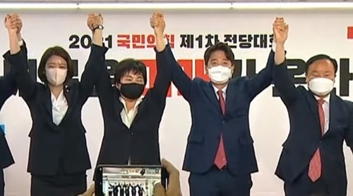 한편, 이날 별도로 진행된 최고위원 경선에서는 조수진 배현진 의원, 김재원 정미경 전 의원이 당선됐다. 청년 최고위원으로는 김용태 경기 광명을 당협위원장이 선출됐다.