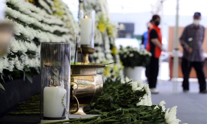 시민 추모객을 위한 합동분향소는 광주 동구청 주차장에 마련됐다. 전날 자정 기준 분향소에는 1268명의 추모객의 발걸음이 이어졌다.