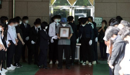 교복 차림의 학생들은 운구 행렬을 양옆에서 지켜보며 고인이 떠나는 마지막 여정을 배웅했다.