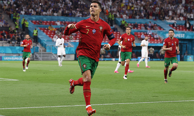 그러나 호날두가 24일 헝가리 부다페스트의 푸슈카시 아레나에서 열린 프랑스와의 유로 2020 조별리그 F조 3차전에서 2골을 터뜨리며 끝내 이를 따라잡았다. 0-0으로 팽팽하던 전반 31분 다닐루 페레이라(30·포르투)가 얻어낸 페널티킥을 성공시킨 데 이어, 1-2로 역전된 후반 15분 프랑스 수비수 쥘 쿤데(23·세비야)의 핸드볼 반칙으로 나온 페널티킥을 또 한 번 득점으로 연결했다.