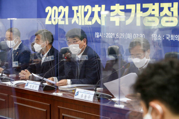 당정은 이날 소득 하위 80%를 지급 대상으로 결정했지만 여진은 지속될 전망이다. 여당 내부에서도 여전히 전 국민 지원금을 주장하는 목소리가 커 다음 달 국회 추경 논의 과정에서 변수가 남아 있다. 박 의장도 이날 “단 한 번도 전혀 건드리지 않고 추경이 통과된 적은 없다”고 말했다.