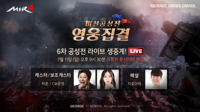 위메이드의 대작 모바일 MMORPG 미르4가 오는 11일 e스포츠의 첫걸음으로 제6차 비천공성전 생중계를 실시한다.