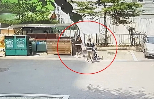 공개된 사진에서 B양의 어머니는 자전거와 결합된 유모차에 B양을 태우고 생후 4개월 된 아들을 아기띠에 감아 안고 있었다.