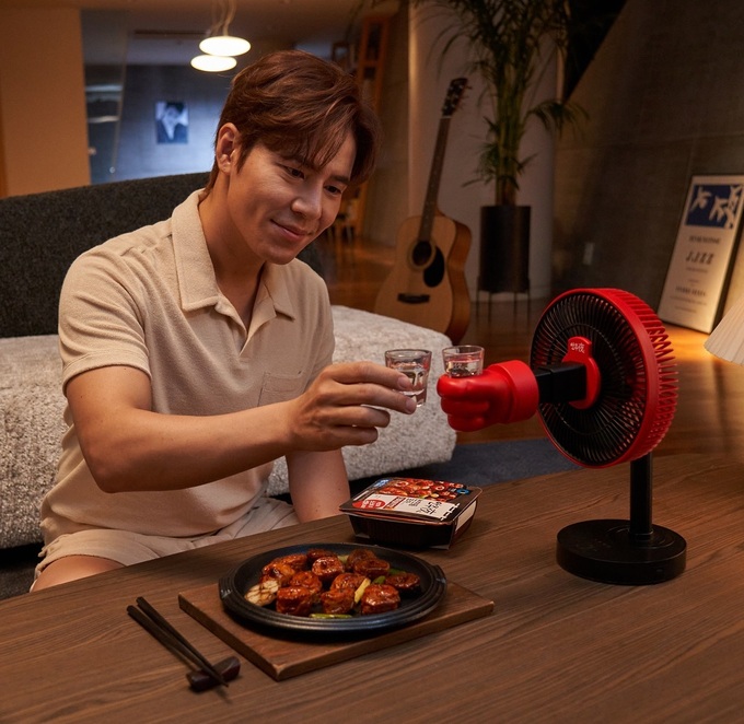 혼술선풍기는 무더위 집콕에 지친 소비자에게 재미를 선사하기 위해 준비한 아이템이다. 탁상용 선풍기에 술잔을 들고 있는 손이 붙어있는 독특한 모양새다. 선풍기의 '회전' 기능을 활용해 건배할 수 있는 재미도 있다.