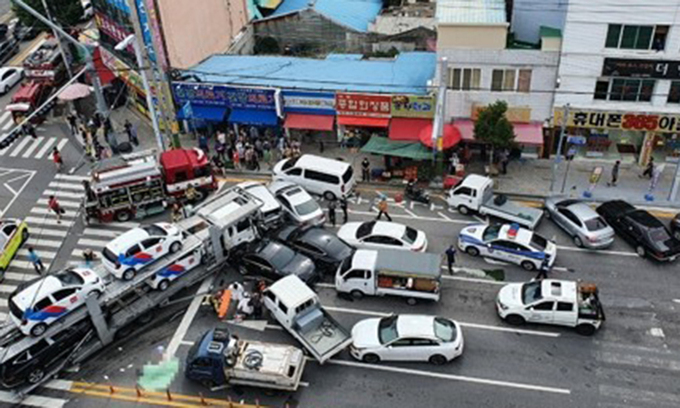 탁송 트럭은 횡단보도를 건너던 행인을 치어 공공근로를 하기 위해 이동하던 노인 3명이 숨지고 16명이 부상했다.