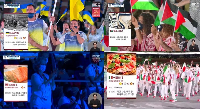 이뿐만이 아니다. 아이티 선수단 소개에서는 ‘대통령 암살로 정국은 안갯속’이라는 자막과 함께 시위 사진을 삽입했다. 앞서 조브넬 모이즈 아이티 대통령은 이달 초 자택에서 괴한들의 총에 맞아 숨졌다. 암호화폐를 법정화폐로 채택한 엘살바도르를 설명할 때는 비트코인 사진을 넣었다.