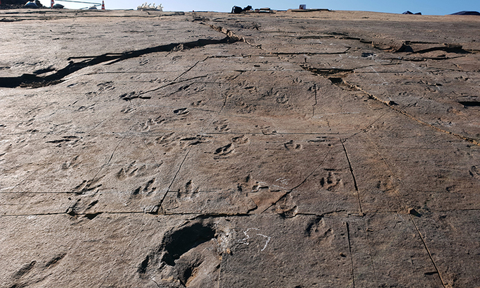 문화재청은 약 1억년 전 한반도에 서식한 동물의 행동양식과 당시 환경을 보여주는 자료인 ‘진주 정촌면 백악기 공룡·익룡 발자국 화석 산지’(사진)를 국가지정문화재 천연기념물로 지정 예고했다고 9일 밝혔다.