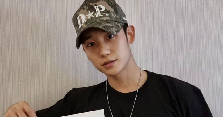 공개된 사진 속 정해인은 'D.P.'가 새겨진 티셔츠와 모자, 군번줄을 착용하고 현역병 입영통지서를 들어보였다.