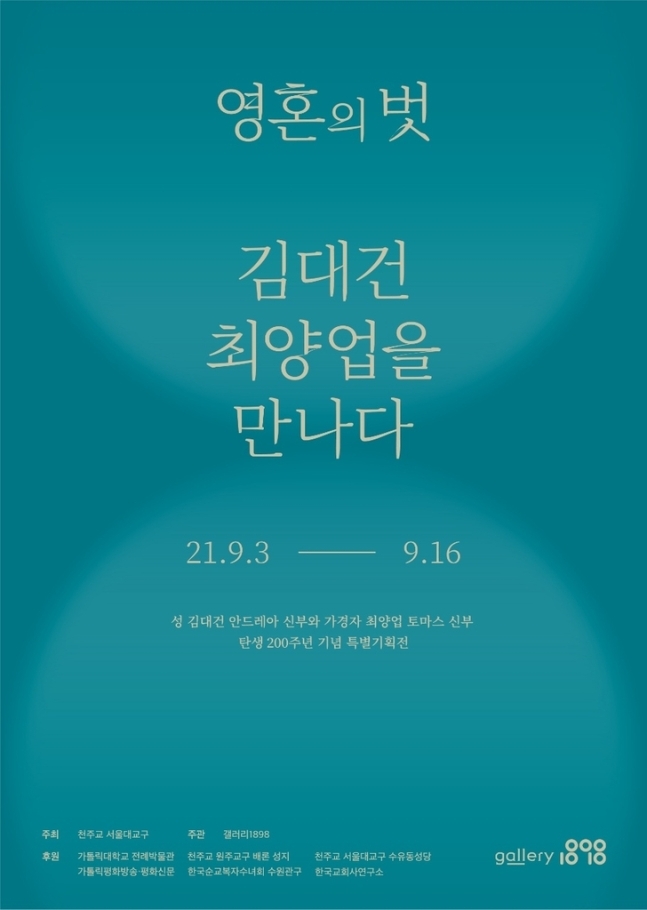 천주교 서울대교구는 9월3∼16일 서울 중구 명동갤러리1898에서 특별전시 ‘영혼의 벗, 김대건 최양업을 만나다’를 개최한다고 23일 밝혔다.