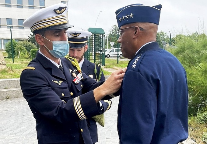 한편 프랑스 공군은 미국·프랑스의 오랜 우정을 상징하는 라파예트 비행단 휘장도 브라운 총장한테 증정했다. 라파예트 비행단은 1차대전 당시 미국이 프랑스 편에서 공식 참전하기 전인 1916년 프랑스 장교의 지휘 아래 미국 조종사들로 꾸려져 전쟁에서 활약한 비행단이다. 브라운 총장에 앞서 이 휘장을 받은 미국인은 2차대전 때 연합군 사령관으로 나치 독일의 압제에서 프랑스를 해방시키고 훗날 미국 대통령까지 지낸 드와이트 아이젠하워(1890∼1969), 그리고 1932년 여성으로는 처음 미국에서 유럽까지 대서양 횡단 비행에 성공한 조종사 아멜리아 에어하트(1897∼1937), 이렇게 두 명뿐이다.