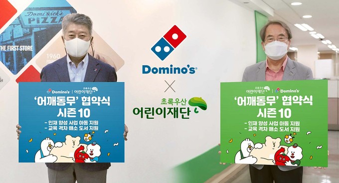 도미노피자는 초록우산 어린이재단과 ‘어깨동무 캠페인 시즌10’ 협약을 도미노피자 본사와 초록우산 어린이재단 본부에서 비대면으로 체결했다고 밝혔다.