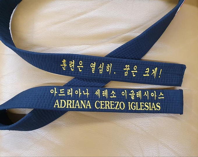 번역기의 잘못(?)으로 다른 뜻의 한국어가 적힌 검은 띠를 허리에 매고 2020 도쿄올림픽에 출전했던 스페인 태권도 선수에게 우리 외교당국이 그의 좌우명이 정확하게 새겨진 띠를 선물했다.