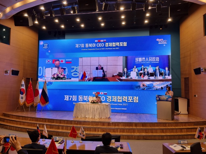 경북 포항상공회의소(회장 문충도)는 지난 10일 포스코국제관에서 포항시 주관으로 열린 ‘2021 동북아 CEO경제협력포럼’에서 러시아 연해주상공회의소(회장 스투프니쯔키 보리스)와 중국 훈춘시 공상업연합회(주석 왕연)간 공동협력을 위한 교류협력의향서를 체결했다고 12일 밝혔다.