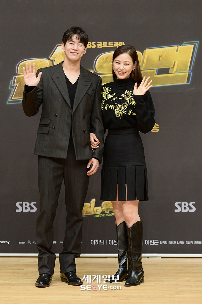 배우 이상윤(사진 왼쪽)과 이하늬가 15일 오후 온라인 생중계로 진행된 SBS 새 드라마 '원더우먼' 제작발표회에 참석해 포즈를 취하고 있다.