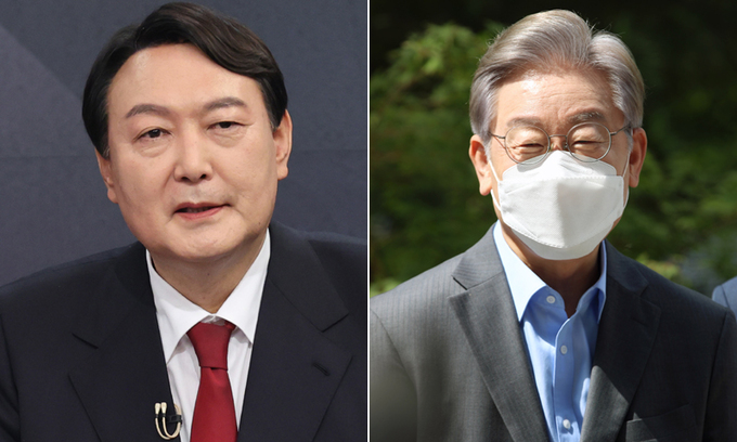 추석 연휴 여론조사에서 더불어민주당 이재명 대선 경선 후보와 국민의힘 윤석열 대선 경선 후보가 각각 1위를 차지한 상반된 결과가 나왔다. ARS 자동응답 조사에서는 윤 후보가 강세를 보였지만 면접원에 의한 전화면접조사 방식에서는 이재명 후보가 상대적으로 우위였다.