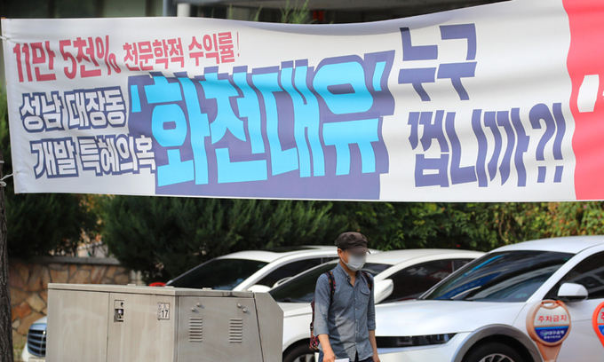 화천대유의 7개 자회사인 천화동인은 개인 투자자 7명이 설립한 1인 회사다. 투자원금 3억원으로 대장동 개발을 위한 특수목적법인(SPC) ‘성남의뜰’ 지분 6%를 사들여 3년간 3463억원의 배당금을 받은 것으로 알려졌다. 성남의뜰 수익금 배당방식 등을 설계하고 사업을 강행했다는 의혹을 받고 있는 유 전 본부장은 최근 전화번호를 바꾸고 외부와 접촉하지 않는 것으로 전해졌다.