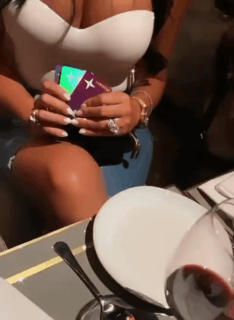 공개된 영상 속 조지나는 다리를 꼰 채 의자에 앉아 손 안에 있는 카드를 만지고 있다.