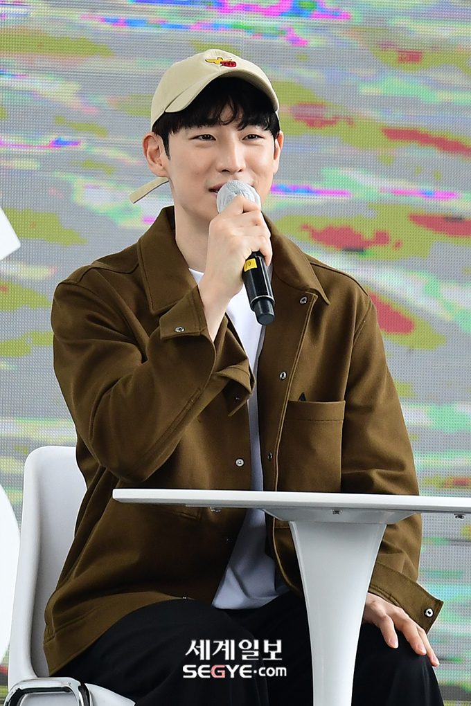 배우 이제훈이 8일 오후 부산광역시 우동 영화의 전당에서 열린 영화 '언프레임드'의 무대인사에 참석해 인사말을 하고 있다.