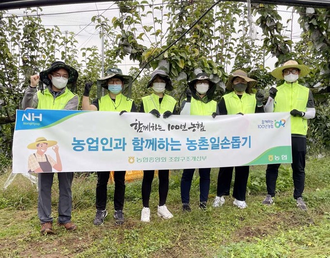 농협중앙회(회장 이성희) 조합구조개선부 직원들은 8일 경기도 고양시 원당동 관내 배 재배농가에서 농촌일손돕기를 실시했다.