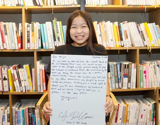 한국전쟁 중 실종된 미군 유해를 찾아달라는 초등학생의 손편지에 주한 미국대사 대리가 감사편지를 보냈다.
