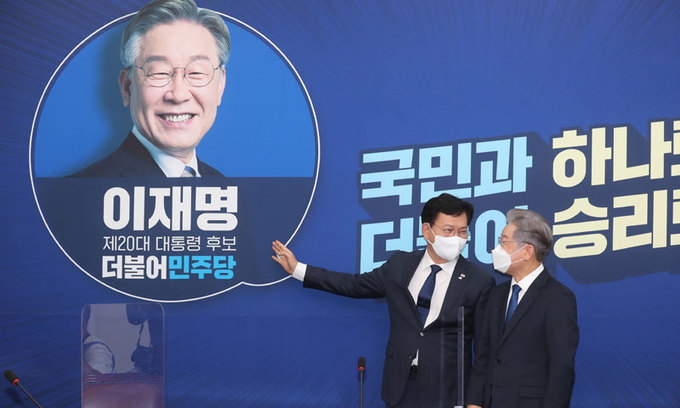 이 후보는 이날 오전 송영길 당 대표 등 민주당 지도부, 변재일·우원식 캠프 공동선대위원장 등과 함께 대전현충원을 찾아 기념탑을 참배했다. 현충원 방명록에는 “선열의 고귀한 희생에 성장하는 공정사회로 보답하겠다. 더불어민주당 대통령 후보 이재명”이라고 썼다.