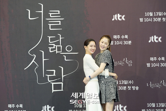 배우 신현빈(사진 왼쪽)과 고현정이 13일 오후 온라인으로 진행된 JTBC 새 수목드라마 '너를 닮은 사람' 제작발표회에 참석해 포즈를 취하고 있다.
