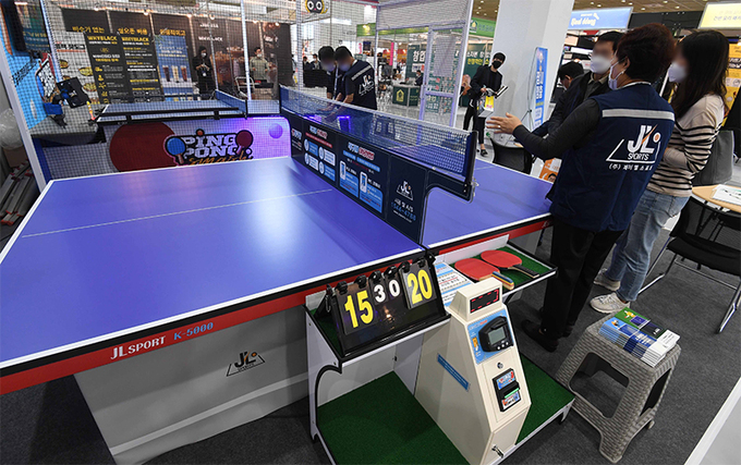14일 서울 강남구 코엑스에서 열린 프랜차이즈 창업박람회에서 관람객들이 무인 운영 탁구장에 대한 설명을 듣고 있다.