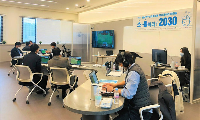 사업단은 AI·SW 학생 동아리 선도교사 협의회를 구성하고 학생 동아리 연구재료 지원 및 방문 멘토링을 진행했다. 이번 학생동아리 한마당은 올해 활동 성과를 공유하고 참여 학생들의 AI·SW에 대한 흥미와 창의적인 사고력을 더욱 높이기 위해 마련됐다. 이날 행사는 메타버스 플랫폼인 게더타운에서 진행됐다. 메타버스 내에 마련된 각 각의 발표장에서는 AI·SW 학생 동아리 67개 팀의 활동 성과 발표가 진행됐다. 14개 시군 상상이룸공작소의 활동 성과 공유 및 체험이 상설마당에서 이뤄졌다.