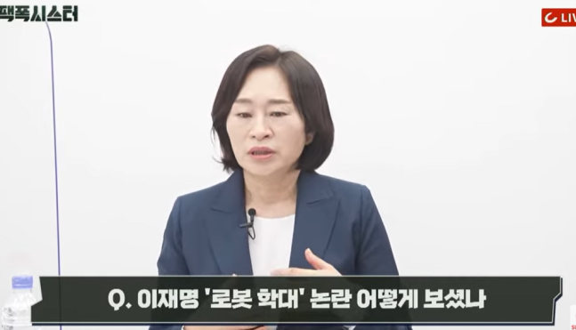 강씨는 로봇 논란에 대해 “내막은 잘 모르지만, (이 후보의 행동이) 무의식적으로 나온 것이고 로봇은 무생물이지만 생명에 대한 무의식을 투사하는 것”이라며 “그런 것으로 미뤄 짐작해볼 여지를 남겼다. 나도 마음이 불편했다”고 했다.