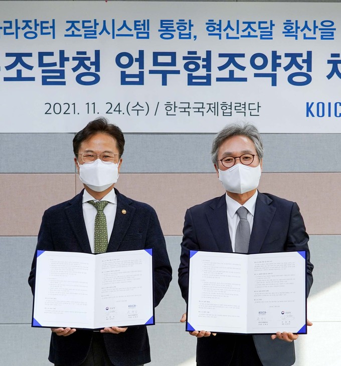 코이카(KOICA, 한국국제협력단)는 조달청과 24일 경기도 성남시 소재 코이카 본부에서 조달시스템 통합과 혁신조달 확산을 위한 업무협약을 체결하고 국내 기업들의 해외 개발원조(ODA) 시장 진출을 위한 징검다리 역할을 하기로 했다.