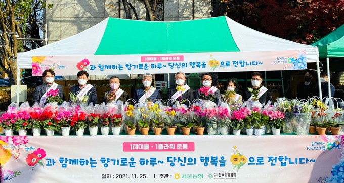 한편, 서울농협은 코로나19로 인해 어려움에 있는 화훼농가를 돕기위해 지난해부터「1테이블·1플라워 운동」을 전개하여 신용점포 및 기관들과 함께 꽃나눔행사를 지속적으로 벌이고 있다.