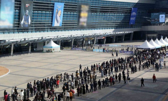 이날 부산에는 303명의 추가 확진자가 발생하면서 역대 최다 확진자 발생 기록을 이틀 만에 경신했다. 그런데도 벡스코에는 이날 점심때부터 나훈아 콘서트 관람을 위해 긴 줄이 이어졌다.