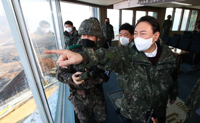 국민의힘 윤석열 대선 후보가 20일 후보 선출 후 처음으로 강원도 최전방 군부대를 찾으며 안보 행보에 나섰다. 군인 처우 개선을 약속한 윤 후보는 철책선을 도보로 점검하고 군 장병과 군인 배우자를 만나 애로사항을 청취했다.