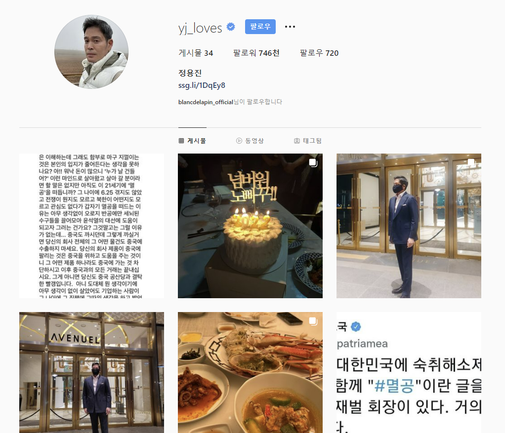 최근 게시글에는 케이크 사진과 함께 “나의 멸공은 오로지 우리를 위협하는 위에 있는애들(북한)을 향한 멸공인데 걔네들을 비난않고 왜 나에게 악평을 쏟아내는지 도저히 이해가 안간다“며 “날 비난할 시간에 좌우 없이 사이좋게 싸우지말고 우리 다같이 멸공을 외치자”고 남겼다.