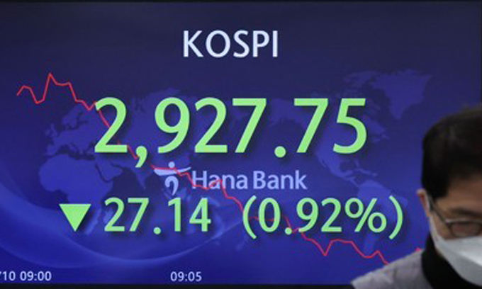 10일 코스피는 전 거래일보다 0.95% 내린 2,926.72로 마쳤다. 코스닥지수도 1.49% 하락해 980.38에 턱걸이했다. 외국인과 기관투자가들이 매물을 쏟아내면서 지수 하락을 부추겼다.