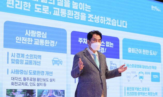 사람과 자연이 조화로운 균형발전도시 건설전략도 공개했다. 처인구 남사읍 일대 620만㎡에 남사 자족복합신도시를 조성해 서남부 거점 친환경생태도시로 육성할 예정이다. 제4차 국가 철도망 구축계획에 반영된 분당선의 조속한 착공, 동백~신봉 신교통수단과 용인 경전철 광교연장안의 경기도 도시철도망 구축계획 반영 등도 적극적으로 추진한다.