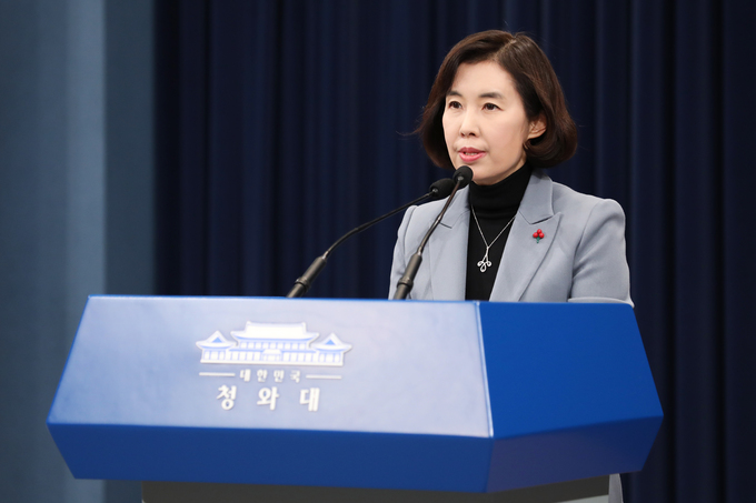 박경미 청와대 대변인이 10일 청와대 춘추관에서 문재인 대통령의 사우디아라비아, 아랍에미리트, 이집트 순방과 관련해 브리핑을 하고 있다.   뉴스1