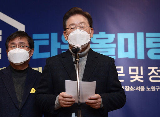 이 후보는 이날 오전 서울 노원구 노후아파트 방문 뒤 재개발·재건축 6대 정책을 발표한 자리에서 기자들과 만나 윤 후보가 '정부와 여당의 부동산 정책 실패가 시대착오적 이념 때문'이라고 비판한 데 대한 입장을 묻는 질문에 이같이 답했다.