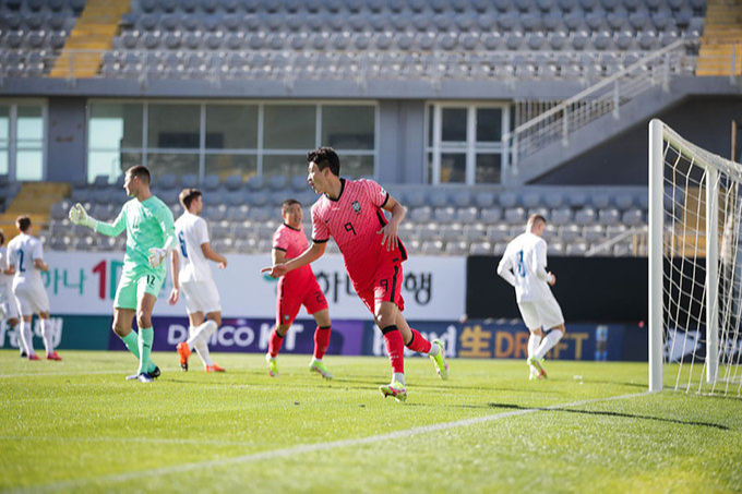 그러나 기우였다. 전반 15분 만에 조규성(김천 상무)이 김진규(부산)의 패스를 받아 오른발 슈팅으로 선제골을 뽑아낸 것. 여기에 전반 24분 조규성이 또 한번 저돌적 돌파로 상대의 페널티킥을 유도해냈다. 아쉽게도 이 페널티킥을 권창훈(김천 상무)이 실패했지만, 3분 뒤 스스로 득점을 터뜨려 이를 만회했다. 전반 29분에는 백승호(전북 현대)가 위력적인 중거리포로 3-0으로 점수를 더 벌려놨다. 주전들이 대거 빠진 경기였지만 벤투 대표팀 감독이 늘 강조해왔던 ‘지배하는 축구’가 그라운드에 구현됐다.