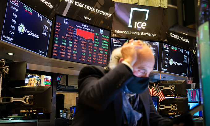 지난 21일(현지시간) 미국 뉴욕 증시의 다우존스30 산업평균지수는 전장보다 450.02포인트(1.30%) 떨어진 3만4265.37에 거래를 마쳤다. 스탠더드앤드푸어스(S&P)500지수는 84.79포인트(1.89%) 내린 4397.94, 기술주 중심의 나스닥지수는 385.10포인트(2.72%) 하락한 1만3768.92에 각각 장을 마감했다.