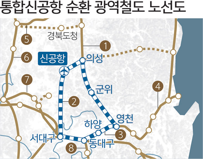 경북도가 대구·경북 어디서든 통합신공항 접근이 쉽도록 순환 광역철도를 추진한다.